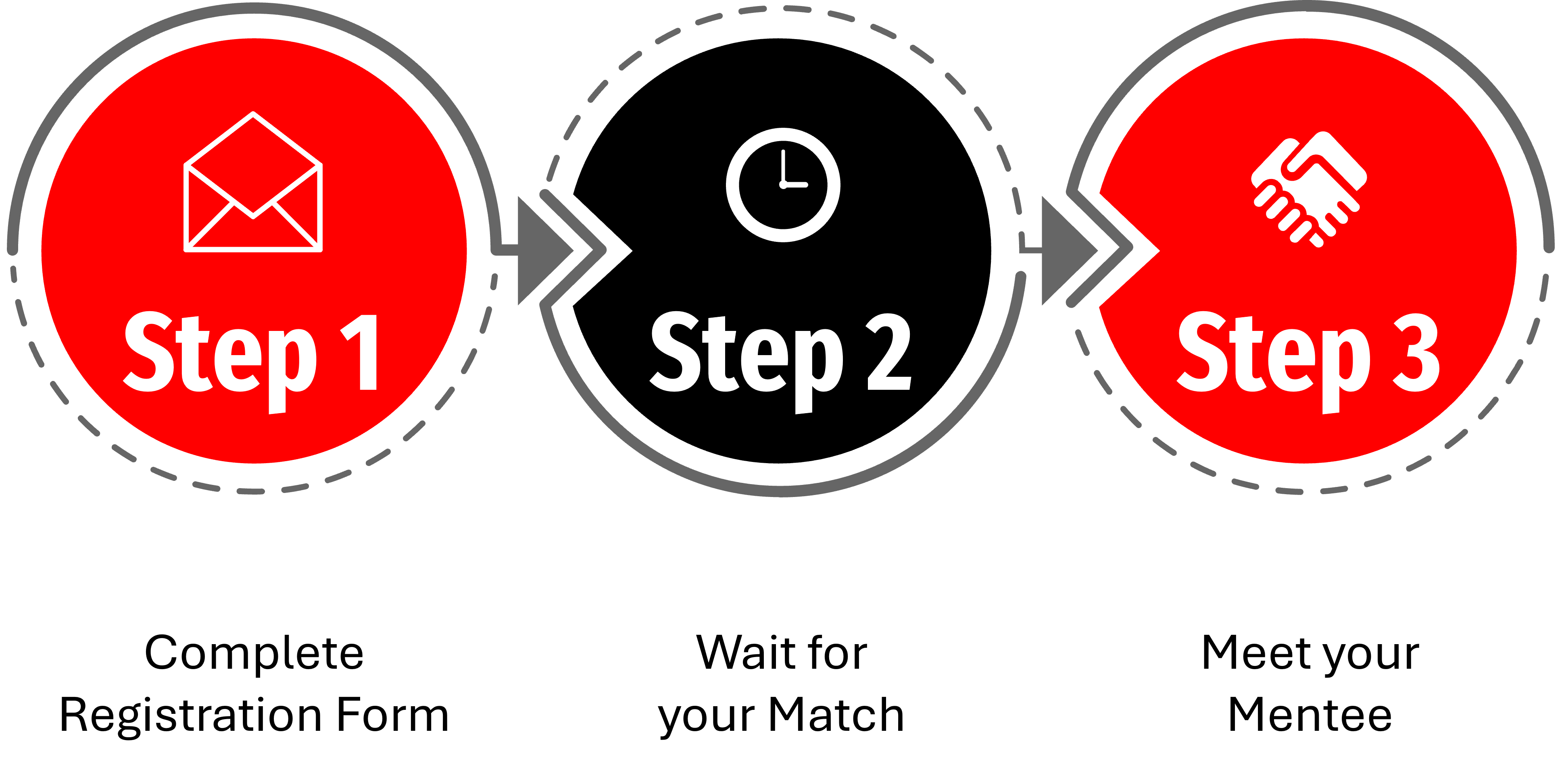 • You are willing to dedicate a total of 12 hours over 6 months (approximately 2 hour/month) to share your industry knowledge and networking expertise with 1 mentee on a 1:1 basis